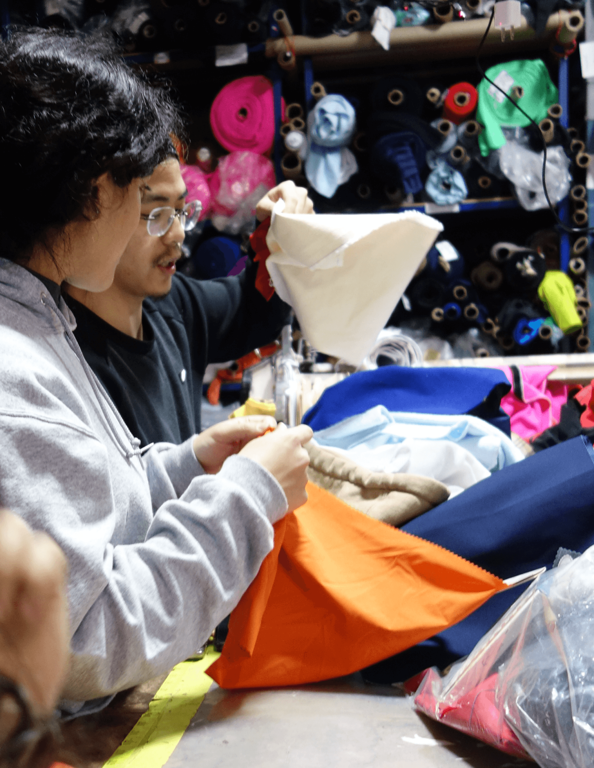 collaborating with a local factory to source sustainable fabrics